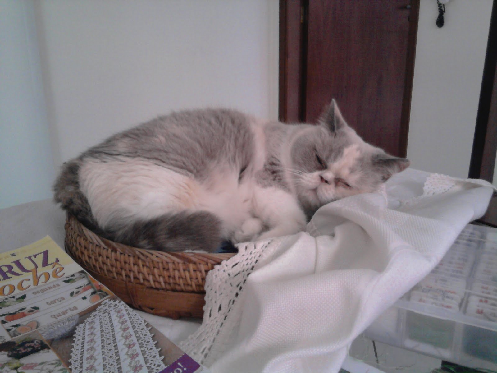 Adorei mesmo o teu gato, o meu também me faz companhia quando estou a bordar.